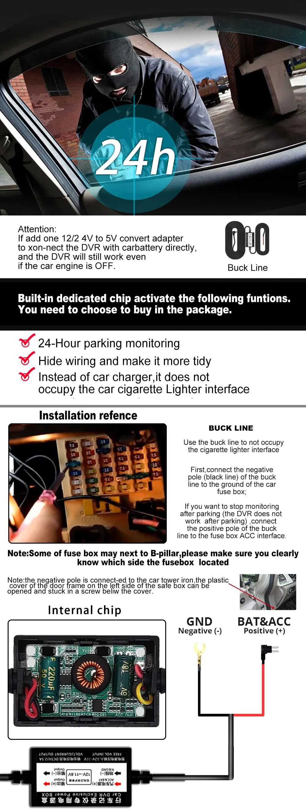 • Built-in Battery :The camera comes with a built-in battery, which means that it can continue to record video even when the vehicle is turned off.